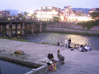 From there, about ten of us biked/ran to Shimogamo Jinja, where we drank beers and watched the fireflies (and felt the mosquitoes) on a bridge over a stream in the forest next to the shrine - a genuinely Japanese moment, and one of complete happiness with my fate. Misa also joined us there, and after an hour or two we slowly headed for Akio's place, where we made merry until around 4 am. Twelve hours later, I woke up at Misa's, went home, and that was my weekend. Very satisfying indeed.